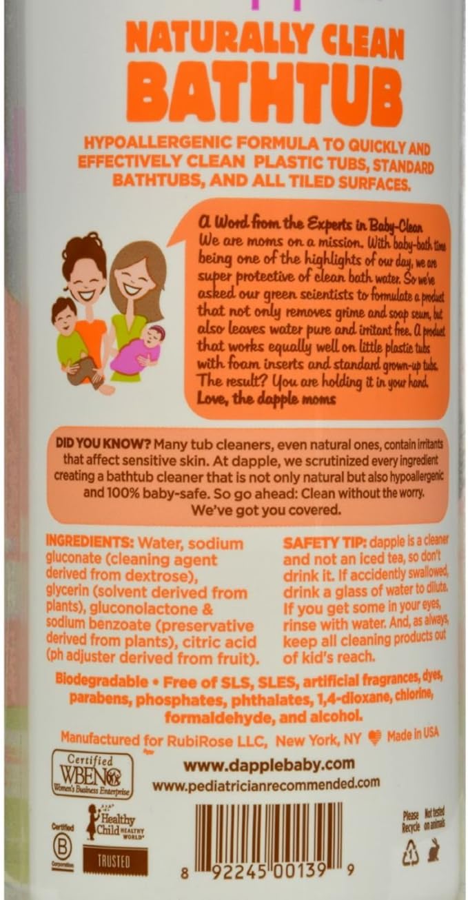 Dapple Bathtub & Tile Cleaner Spray : 24 Best Baby Friendly Cleaning Products 2020 The Strategist - Water, sodium gluconate (cleaning agent derived from dextrose), glycerin (solvent derived from plants), gluconolactone and sodium benzoate (preservative derived from plants), citric acid (ph adjuster derived from fruit).. Simply spray the cleaner on the tub surface and let it sit for two to three minutes, so the acidic foaming formula can penetrate stains. Ebay product id (epid) 1730249496. This bleach free, bathroom cleaner eliminates *staphylococcus aureus (staph), salmonella enterica (salmonella), influenza a virus (hong kong), rhinovirus type 37. Dapple tub and tile cleaner spray fragrance (30 fl oz) about this product. The dawn soap will need a while to work, and of course the thickness of the dawn keeps the vinegar in place and lets it have time to work as well.