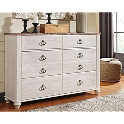 This chest of drawers is the ultimate statement piece for your coastal cottage or shabby chic inspired retreat. Whitewashed finish on the drawers and sides is wonderfully easy on the eyes. Value and versatile style combine with this chest of drawers. Willowton 64 inch infrared fireplace tv stand. Bun feet on storage pieces and footboard of bed.